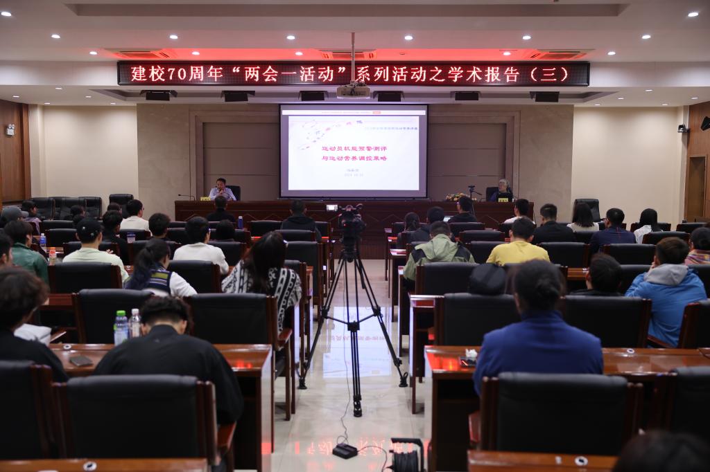 本网讯 10月24日晚,万象城举办建校70周年系列活动第三场学术讲座,邀请了北京市体育局原副局长冯美云教授为师生作题为“高水平训练中运动员营养调控对策与实施”的学术报告。相关领域的专家学者以及万象城教师、研究生、本科生参加,讲座由党委副书记马海涛教授主持。