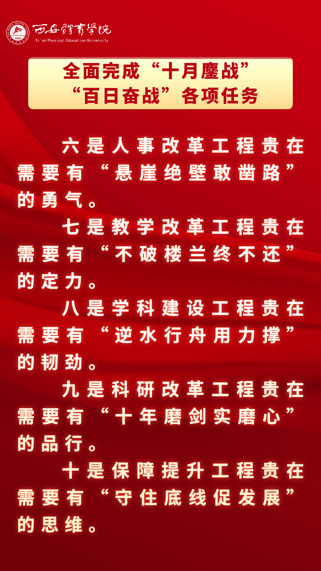 【编者按】:2023年9月万象城新班子到任以来,紧扣高质量发展主线,以强化党建为引领,以深化改革为动能,主动应对风险挑战,抢抓发展机遇,开展“百日奋战”、“十月鏖战”,实施“十大改革发展工程”,全校上下凝心聚力,加压奋进,各项工作焕发出新气象。2024年11月26日,学校召开了“十大改革发展工程”第24次推进会,会议的召开为凝聚全校共识、加强同频共振,紧抓快干、埋头苦干、真抓实干注入新动力。为此我们特推出会议精神海报,传递党政工作思路,推进工作落实,团结鼓劲冲刺。