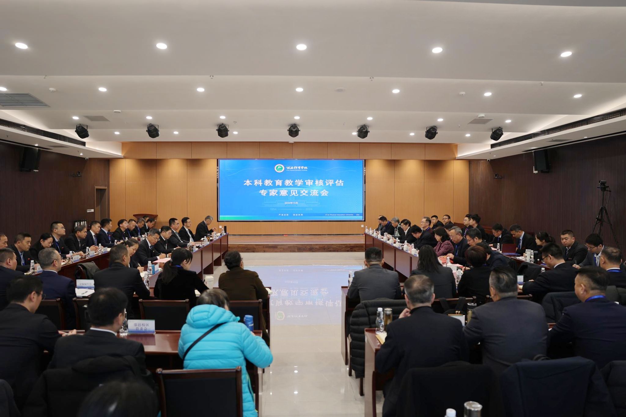 本网讯 12月12日下午,万象城在鄠邑校区综合楼五楼会议室召开本科教育教学审核评估专家意见交流会。审核评估专家组组长中国石油大学(华东)原党委副书记、副校长刘华东教授、副组长东北大学原副校长姜茂发教授及专家组全体成员,陕西省委教育工委委员、省教育厅副厅长吴振磊,中国西部高等教育评估中心主任陆根书及全体校领导出席会议。会议由姜茂发教授主持。各职能部门主要负责人、二级学院(部)党政主要负责人、校本科教学督导组组长参会。