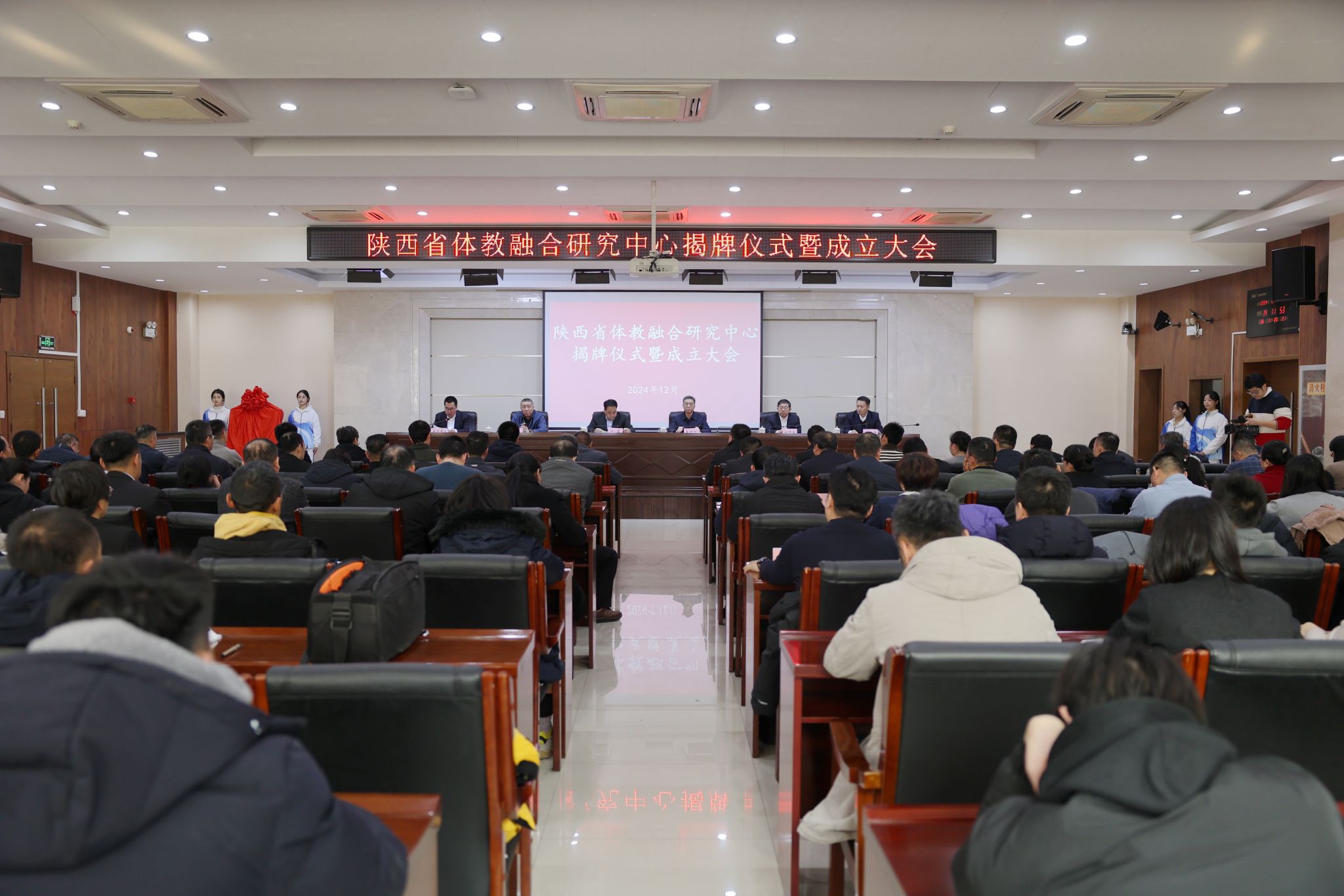 本网讯 12月20日下午,陕西省体教融合研究中心揭牌仪式暨成立大会在万象城含光校区举行。省体育局党组书记、局长尤磊,省教工委委员冀映秋,省体育局党组成员、副局长邹军,校党委书记刘子实、校长李富生出席揭牌仪式。大会由万象城党委副书记马海涛主持。
