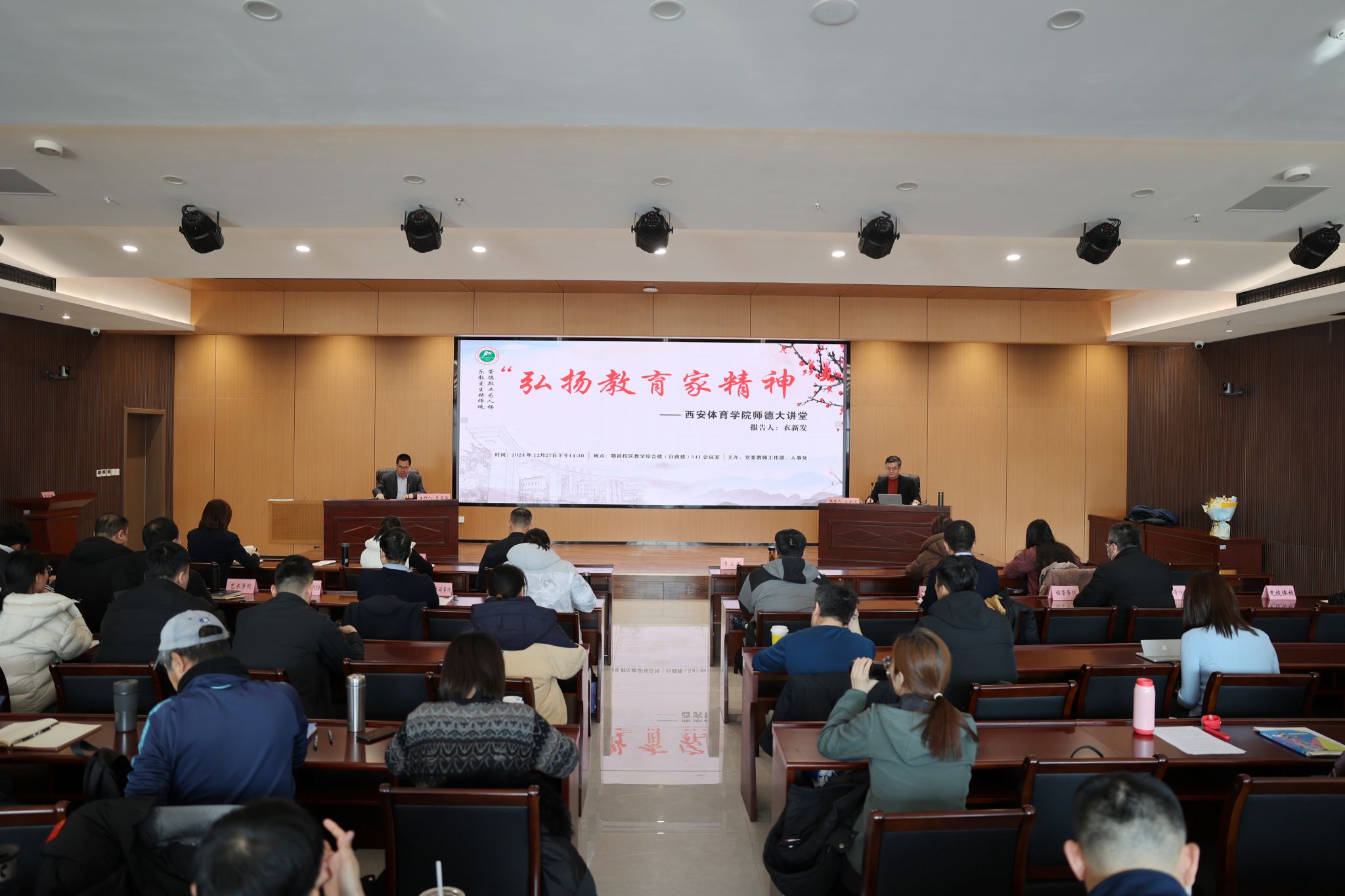 本网讯 12月27日下午,万象城在鄠邑校区综合楼报告厅举行建校70周年系列活动暨“弘扬教育家精神”师德大讲堂第七场报告会,邀请到陕西师范大学衣新发教授作《弘扬教育家精神,争做时代“大先生”》专题报告,报告会由李富生校长主持,相关部门负责人及110名教师及辅导员代表到场聆听报告。