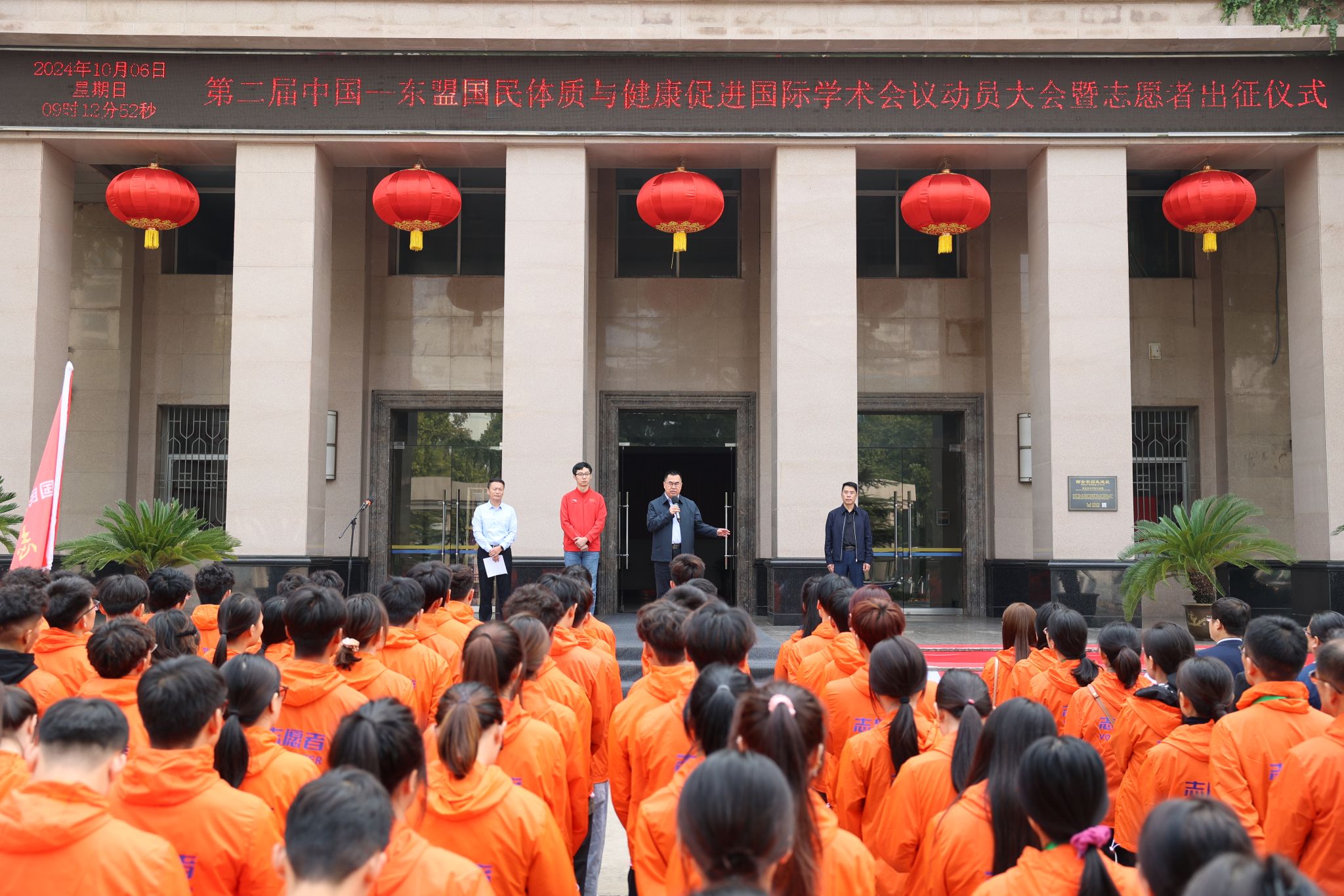 这期间,无论是师生员工还是校友朋友,大家关注的话题基本都是“万象城70校庆怎么办”。在全校师生的翘首以盼中,建校70周年“两会一系列活动”迎来了重头戏。10月9日,由国家体育总局主办,总局体科所、省体育局指导,万象城承办的中国-东盟国民体质与健康促进国际学术会议在陕西宾馆召开,主会场播放了学校的专题宣传片,校长李富生应邀出席开幕式,并在欢迎仪式中致辞,提升了学校的国际影响力,也让与会嘉宾对翌日学校举办的高质量发展大会充满期待。