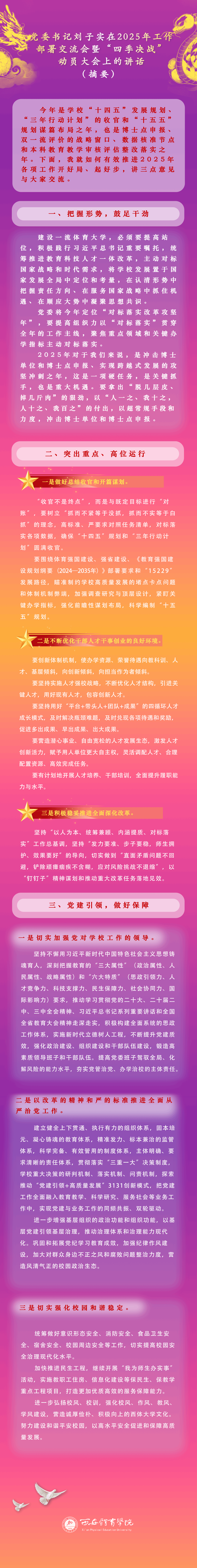 为动员全校师生员工主动担当作为,用实干实绩践行承诺,全力以赴投入“四季决战”,宣传部将主要会议精神和重点内容进行摘录报道,以供师生员工学习交流。