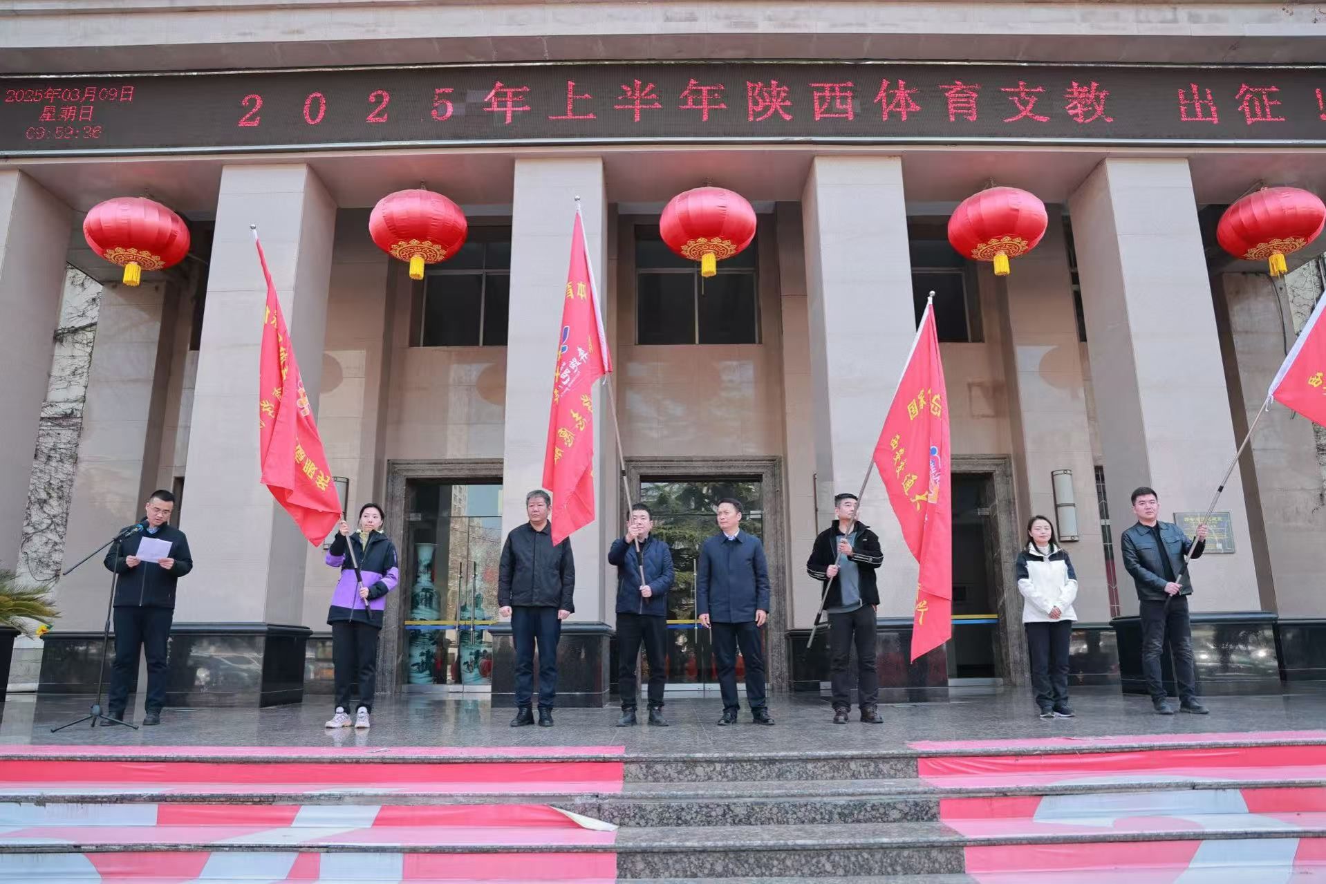 本网讯 3月9日上午,2025年陕西省体育支教志愿服务启动。校党委副书记马海涛、陕西省体育局青少年体育处处长张冰分别为志愿者授旗。全体支教学生进行宣誓,表示将全力以赴,圆满完成各项工作任务,助力体育教育发展。随后,志愿者出发奔赴各自的支教学校,并于当日完成学校进驻和教学准备。