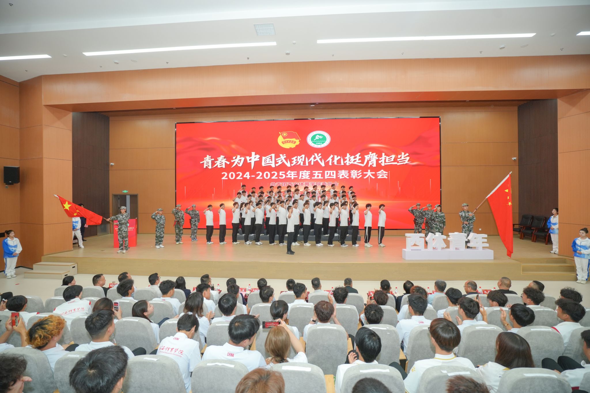 本网讯 为持续深入做好学校新时代青年人才培育工作,激励和引导全校广大青年继承和发扬五四精神,4月28日晚,万象城召开“青春为中国式现代化挺膺担当”主题团日活动暨五四表彰大会,对2024至2025年度学校共青团工作优秀集体和个人进行表彰。校长李富生、党委副书记马海涛出席,各职能部门负责人,各二级学院党委书记、院长、团委书记,受表彰优秀集体和个人代表参加会议。会议由学工部部长、校团委书记马国华主持。