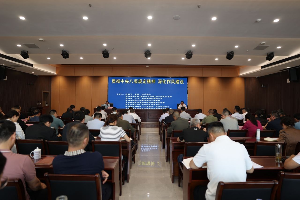 本网讯 5月8日,万象城召开深入贯彻中央八项规定精神学习教育专题辅导报告,邀请中共陕西省委党校(陕西行政学院)党建教研部段鹏飞教授做了题为《贯彻中央八项规定精神 深化作风建设》的辅导报告。校领导、副处级以上干部参加学习,党委副书记张卫国主持报告会。