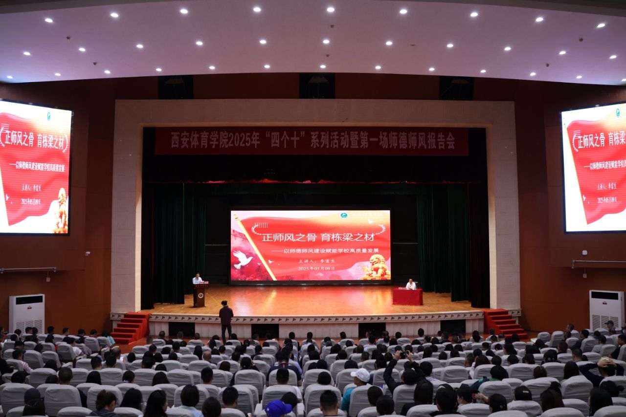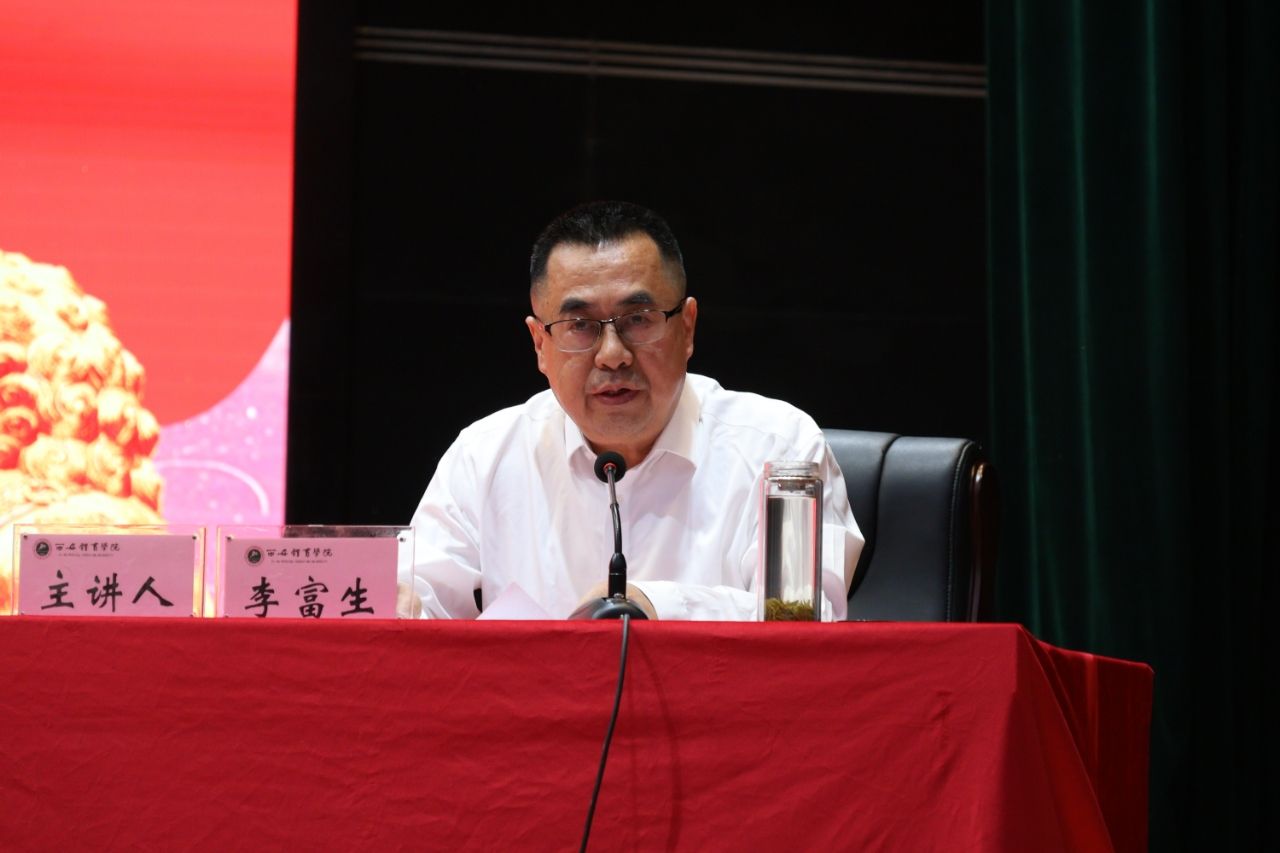 本网讯    为落实立德树人根本任务,大力弘扬教育家精神,5月9日晚,学校“十场师德师风报告会”系列活动正式启幕。校长李富生以《正师风之骨 育栋梁之材——以师德师风建设赋能学校高质量发展》为题作了报告,党委副书记马海涛主持报告会,全体教师、教练员、专兼职辅导员、科级以上干部到会聆听。