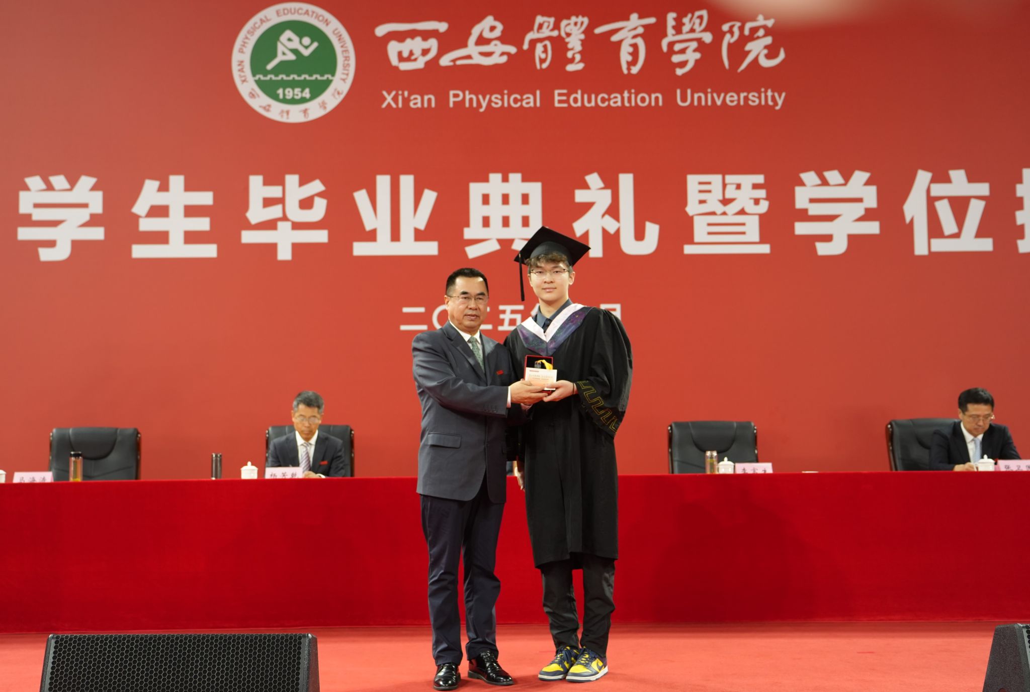 95级体育教育专业、陕西省西咸新区沣西实验学校教育集团总校长杨振德作为校友代表发言,他强调体育不仅是强健体魄的工具,更是塑造人格、培养精神的重要途径,鼓励同学们在科技与体育融合的时代,要敢于探索,推动体育教育创新发展,要以“体育人”坚定的信念和担当,在建设体育强国的新征程中贡献青春力量。