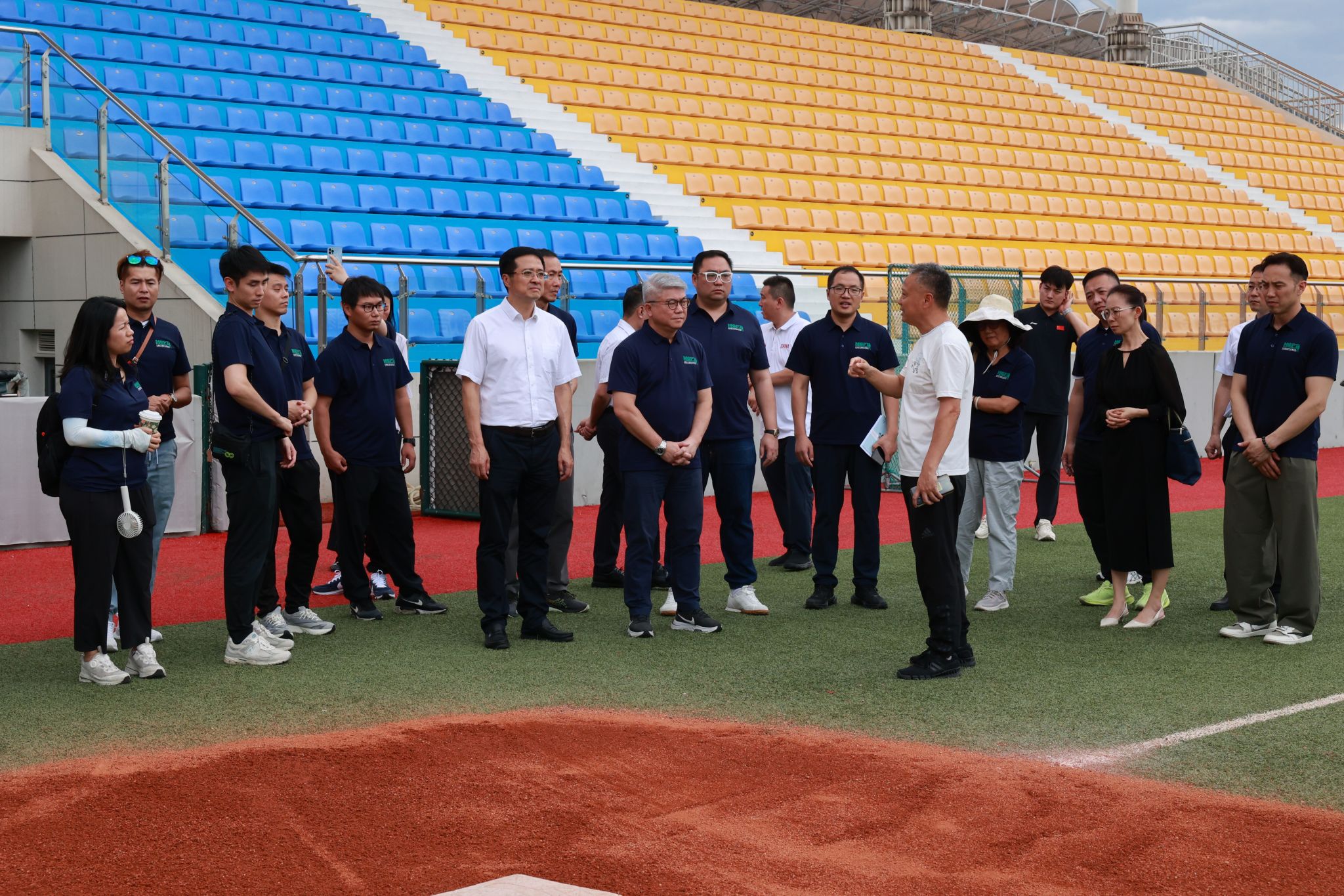 潘永权一行先后参观了十四运会手曲棒垒橄场馆、教学综合楼等,实地考察了各场馆的功能分区、建筑设计和运营规划。万象城基建处负责人就场馆建设及后续使用中的关键问题作了详细说明。来宾对万象城高标准的设施建设、科学化的管理理念、合理的用地分工给予了高度评价。