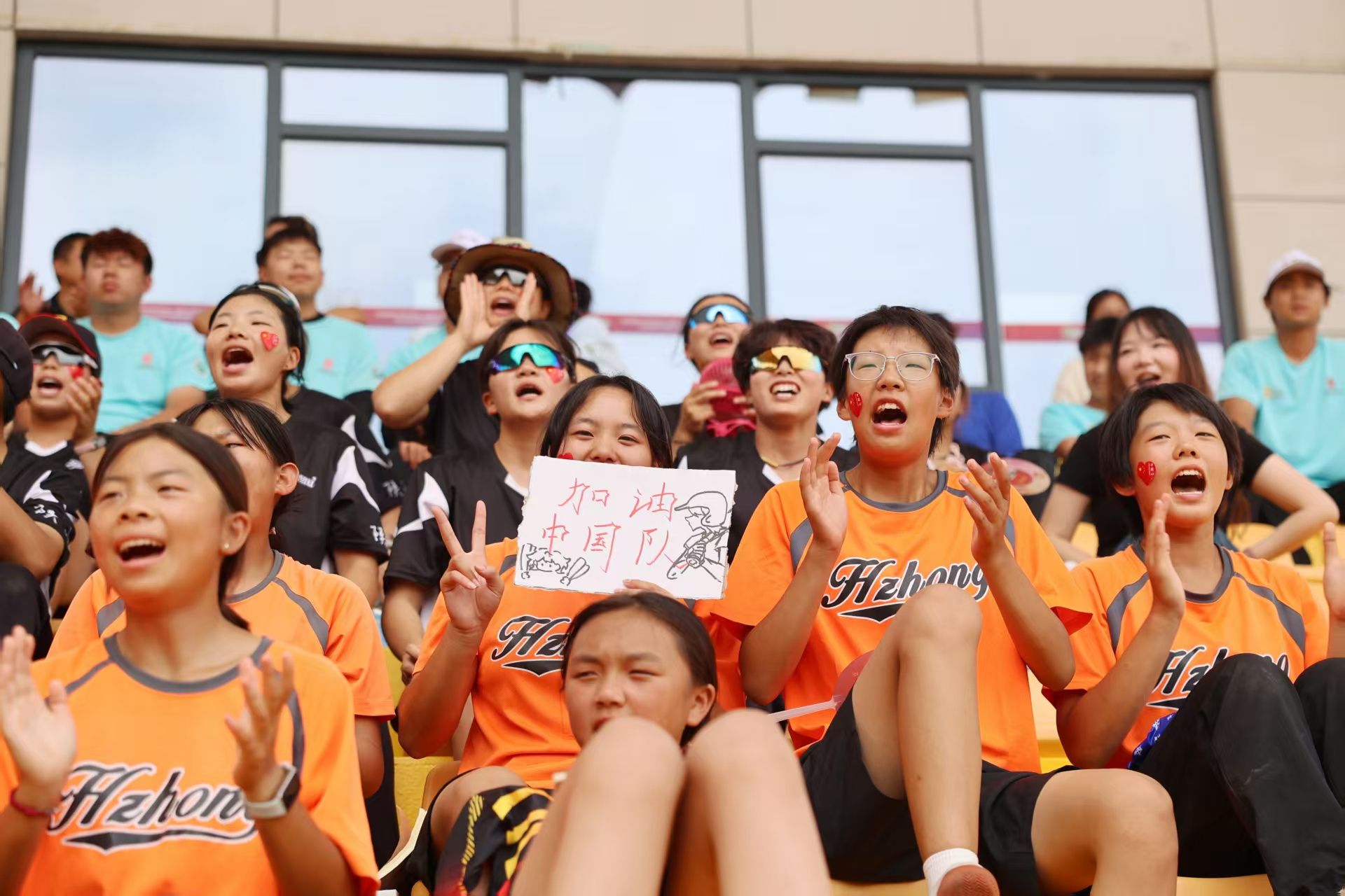 昨日负于强敌日本队的阴霾,今日一扫而空。中国队进攻火力全开,任敏的两支本垒打点燃全场。腼腆的万象城女垒队队员马锦宏再也按捺不住,大声欢呼起来;董昕月脸上的五星红旗贴纸被汗水浸得发亮。“中国队和中华台北队都是实力很强劲的球队,这是我们学习经验的好机会。球迷们都非常齐心协力,能在主场观赛并且给中国队加油很激动”,李昳颖眨着亮亮的眸子兴奋地说道。