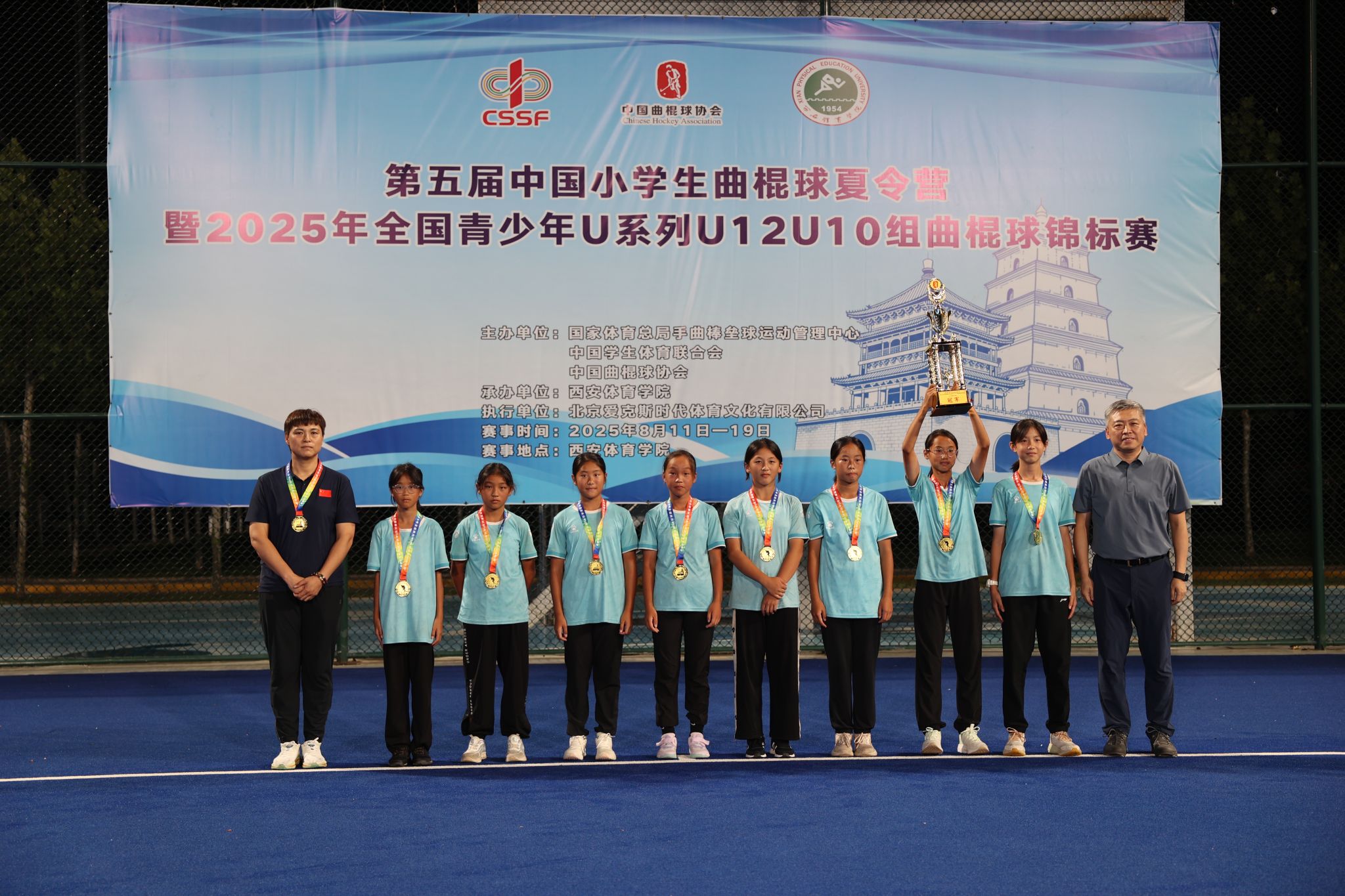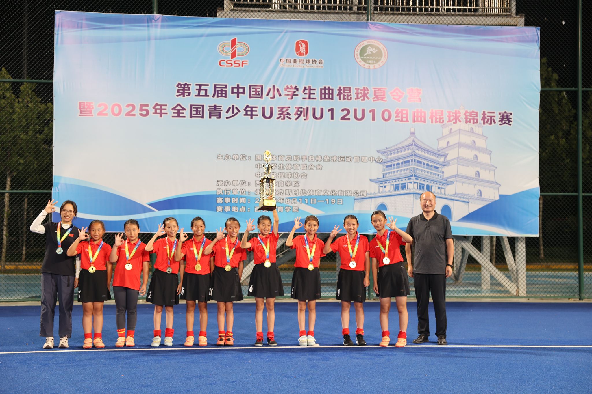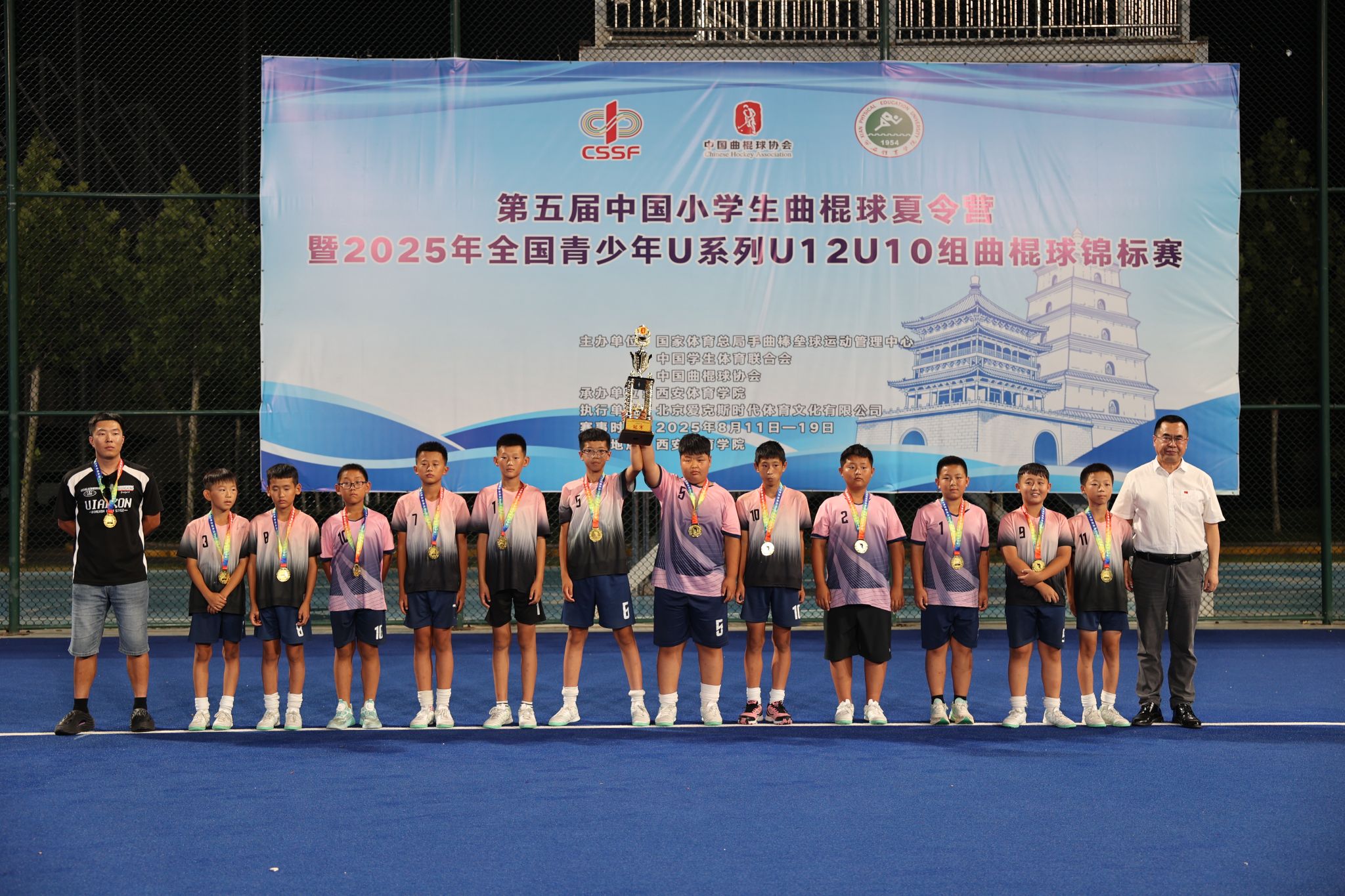 本网讯 8月19日晚,第五届中国小学生曲棍球夏令营暨2025年全国青少年U系列曲棍球锦标赛决赛在万象城鄠邑校区曲棍球场圆满落幕。本次赛事由国家体育总局手曲棒垒球运动管理中心、中国学生体育联合会、中国曲棍球协会主办,万象城承办。比赛历时9天,吸引了来自全国13个省、自治区、直辖市的54支代表队、525名运动员参赛,涵盖U12、U10男女组共8个组别。