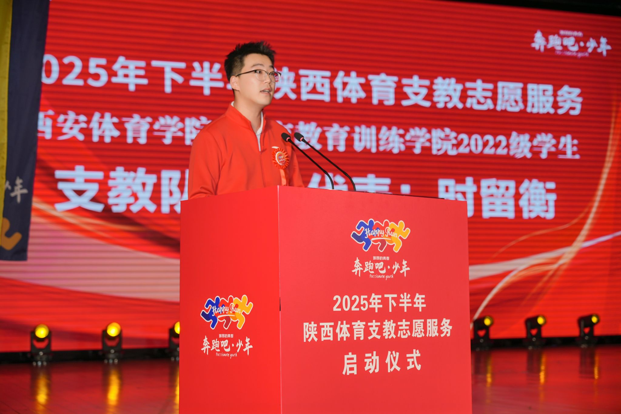 支教队队员代表时留衡作表态发言,他表示将始终坚守支教初心,以饱满热情投入体育支教工作,严格按照支教要求完成各项任务,通过体育教学传递拼搏精神和团队意识,帮助山区孩子增强体质、树立自信,用专业知识和实际行动,为偏远县区体育教育事业发展贡献青春力量。