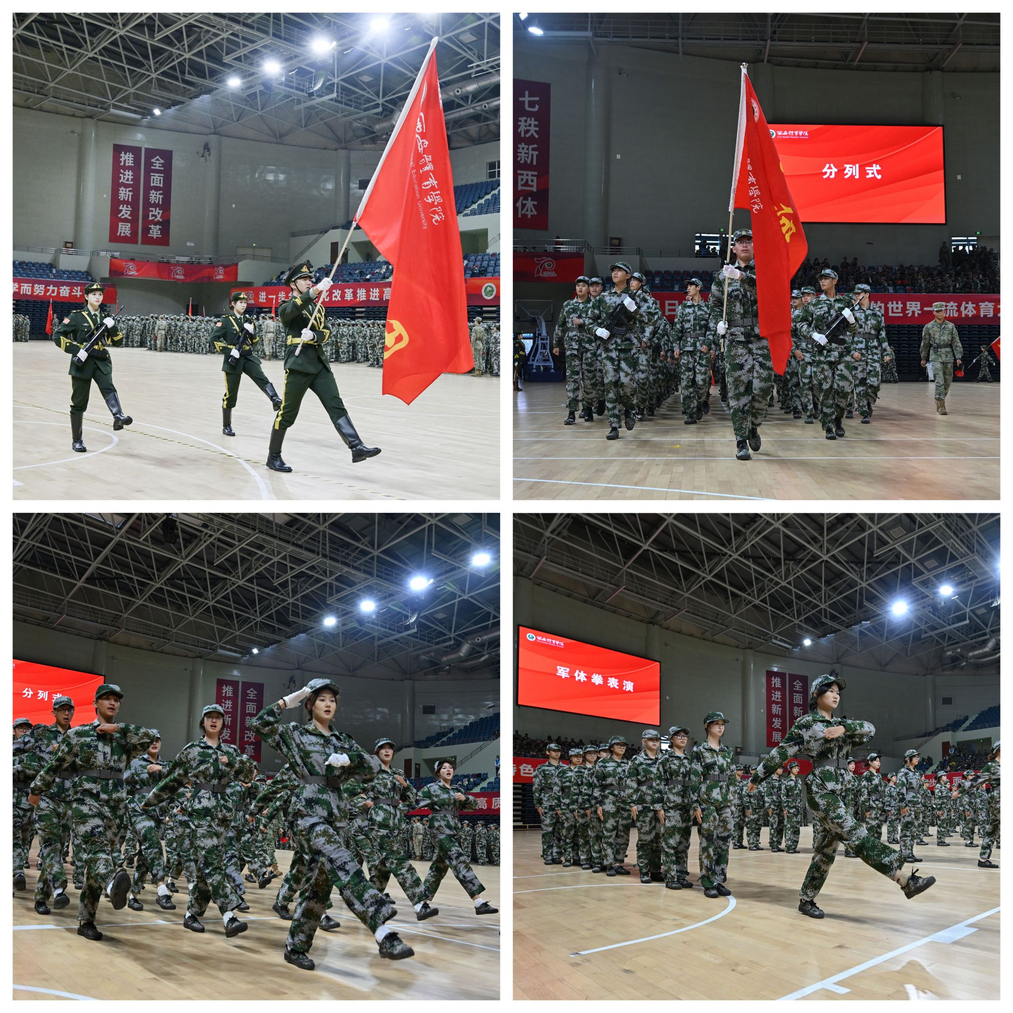 各学院新生组成的受阅方阵依次走过主席台,接受检阅。同学们口号嘹亮,声震云霄,步伐坚定,落地有声,展示了军训磨砺出的顽强意志和严明纪律,赢得了现场阵阵热烈的掌声。各营通过选拔产生特色连队,进行军体拳、刺杀操等展示汇报,动作整齐划一,喊杀声震天动地,汇演精彩纷呈。