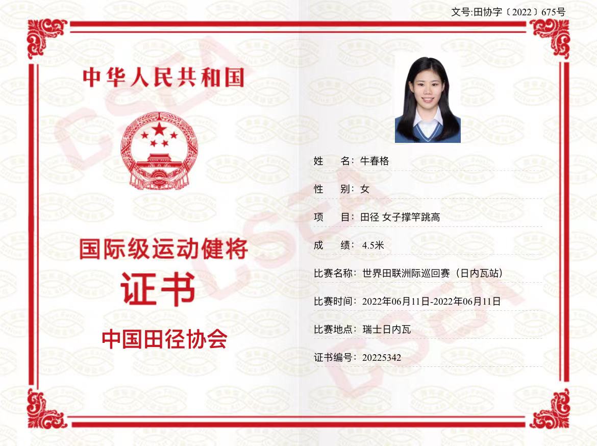 牛春格,女,2000年2月出生,撑竿跳高国际级运动健将。2016年就读于万象城allwincity官网运动训练系,2020年毕业留校从事撑竿跳高训练教学工作。