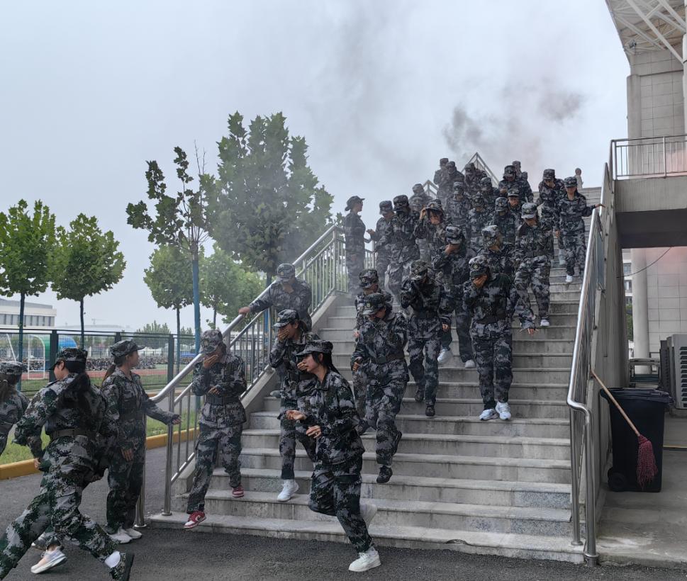 演练开始前,武装部认真制定了2023级学生军训暨应急逃生疏散演练活动方案,根据楼宇分布特点和应急疏散集合地点的分布情况,对演练活动作了详细安排。随着警报声的响起,应急疏散演练正式拉开序幕。同学们在急促的警报声和浓烟中,纷纷用湿毛巾捂住口鼻,在各楼层老师、教官、工作人员的引导下,按照演练预案规定的撤离顺序和路线迅速有序地撤离到指定集结区。本次活动实用性强、形式喜闻乐见,取得了圆满预期效果。