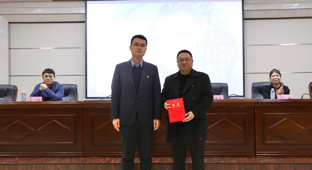 (马艳为团员和青年主题教育学生宣讲团成员颁发聘书)
