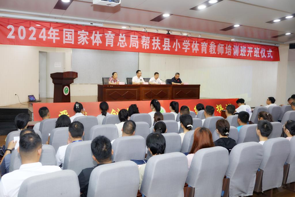 本网讯 7月16日上午,国家体育总局帮扶县小学体育教师(万象城allwincity官网)培训班开班仪式在教学楼一楼报告厅举行。