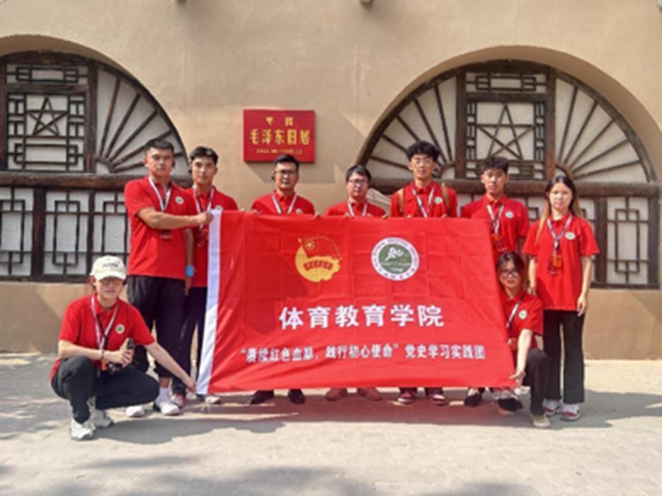 体育教育学院“赓续红色血脉 践行初心使命”党史学习实践团师生一行10人,跟随团中央延安基地走进延安文艺纪念馆、鲁迅艺术文学院、中国人民抗日军事政治大学纪念馆、梁家河知青旧址、北京知青博物馆、延安革命纪念馆、王家坪革命旧址、枣园旧址、张思德纪念广场、凤凰山麓革命旧址、中共中央西北局纪念馆等革命旧址及延安学习书院等地追忆延安革命精神,传承红色基因。期间社会实践团开展体育支教、社区体育运动指导和宣传,学习白求恩精神、学习贯彻习近平总书记五四青年节寄语精神,重温《黄河大合唱》《抗大校歌》,诵读《为人民服务》以及“自己动手 丰衣足食”等体验教学,并同全国其他高校进行社会实践交流。