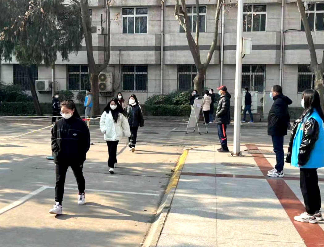 在协助武保处和二级学院做好核酸检测队伍秩序维护过程中,大家细心观察口罩未按规范佩戴的、路途中前后交谈的、未保持安全距离的学生,同志们不时提醒叮嘱。尤其在田径场与奥林匹克花园路段交叉处,大家还不停对来往垃圾倒运车和防疫车进行指挥,确保核酸检测队伍安全有序通过。