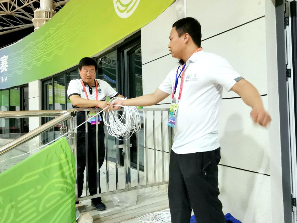 电力保障方面,对室外场馆电力设备、明线、插线板等做好了防雨加固措施。此外,基建处工作人员还对棒球副赛场的音响与话筒,部分功能用房的电视进行了调试检测,保证了赛事的平稳顺利。