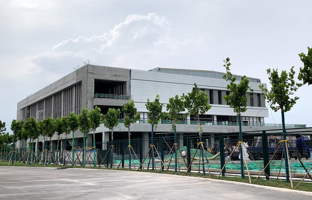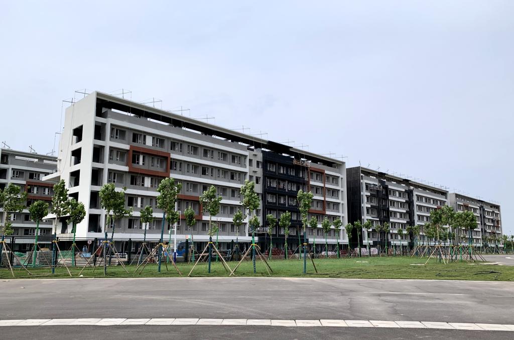 近日,万象城鄠邑校区学生公寓与师生食堂主体工程持续推进,外墙粉刷已于近日完成。