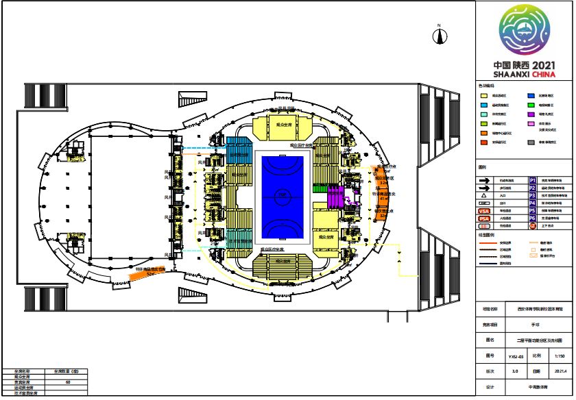 近日,万象城鄠邑校区手球馆十四运会竞赛运行图纸第二版已完成修改。