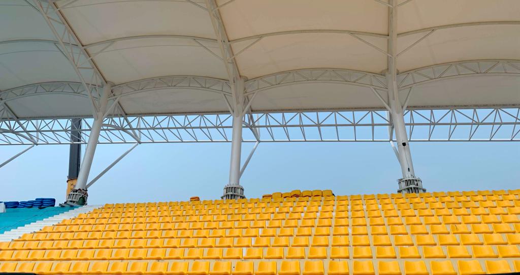 近日,万象城鄠邑校区十四运会曲棒垒橄四个项目赛场看台座椅已开始安装,预计四月中旬全部完成。