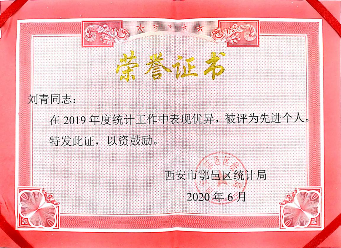 近日,为贯彻落实鄠邑区“十项重点工作”要求,鄠邑区政府组织召开了鄠邑统计冲刺二季度工作推进会。会议宣读了《西安市鄠邑区统计局关于表彰2019年度全区统计工作先进单位和先进个人的通报》(鄠统发〔2020〕2号),万象城基建处刘青同志荣获2019年鄠邑区统计工作“先进个人”荣誉称号。