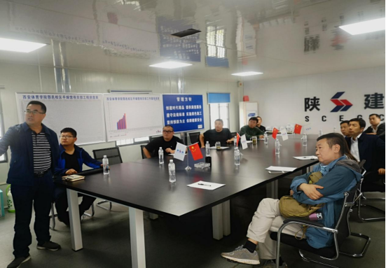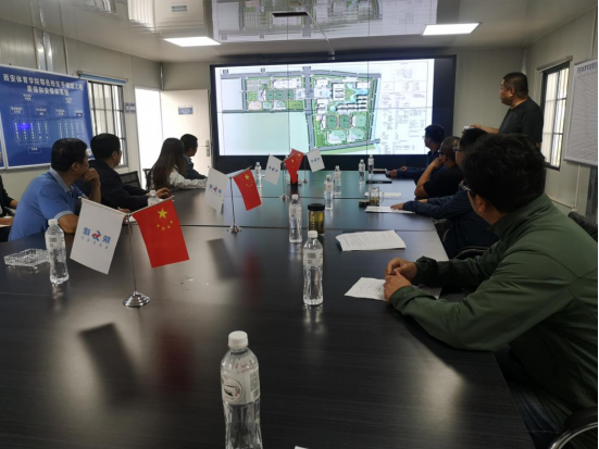 在调研现场,朱昱一行首先视察了十四届全运会手球馆施工现场,随后,在视频会议室召开了座谈会。