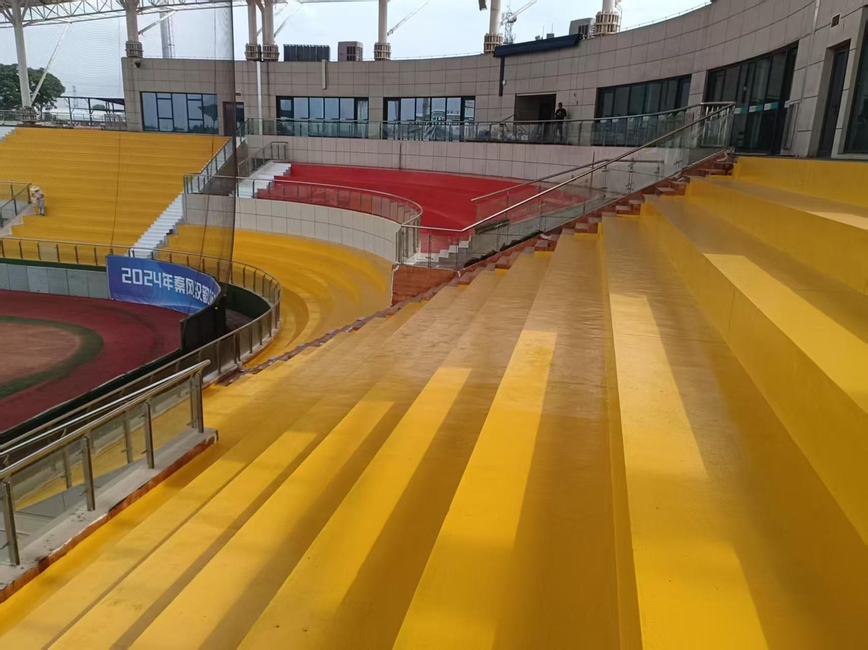 施工团队在作业过程中,严格遵循标准化流程。对旧漆面进行打磨清理,确保表面平整、无杂质;随后选用环保、耐候性强的专业涂料进行刷漆,全新的色彩搭配与场地风格相得益彰,营造整洁活力的视觉氛围。