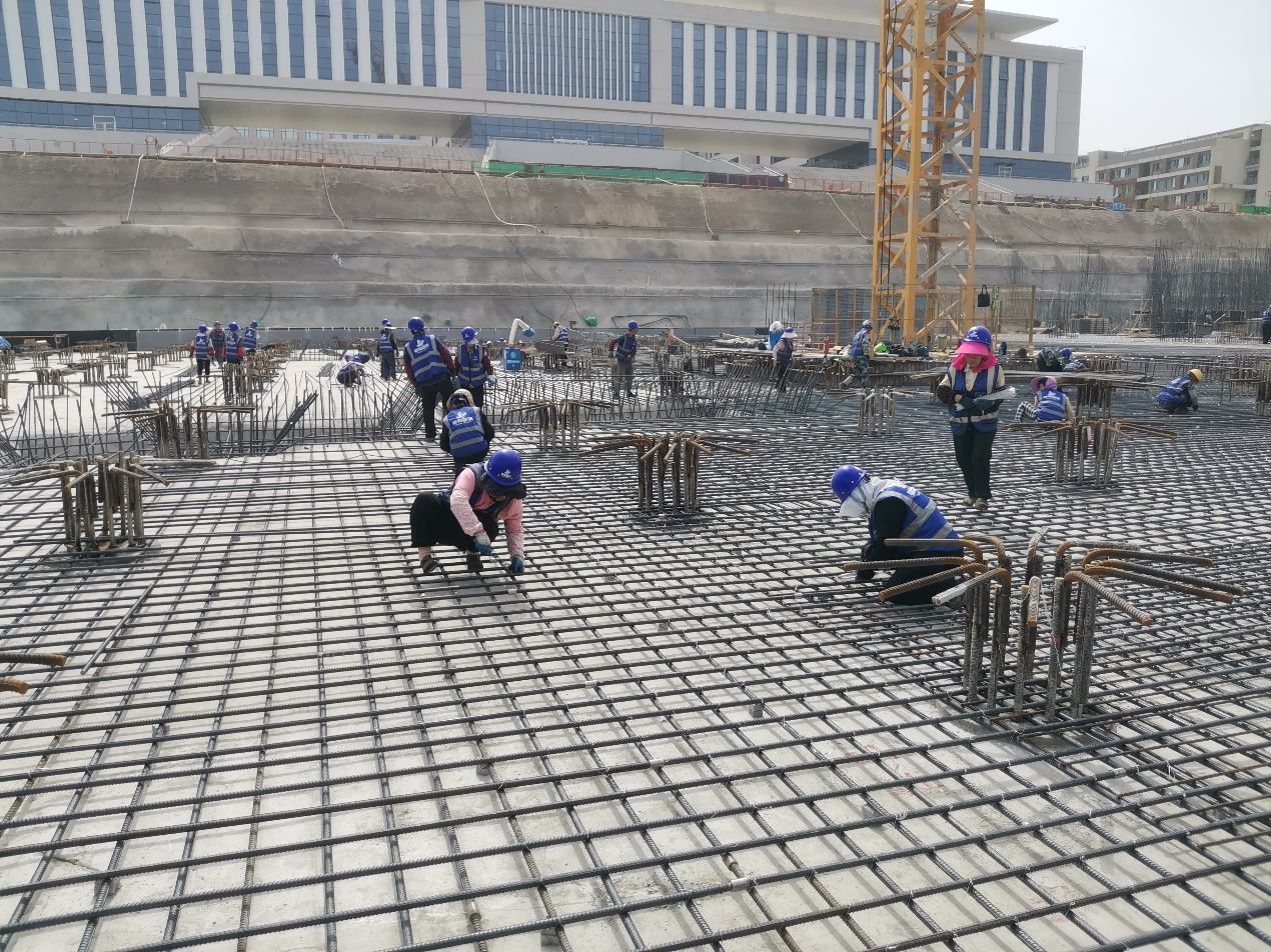 中段基础筏板施工进展顺利,底筋直螺纹套筒连接与绑扎完成95%,面筋直螺纹套筒连接与绑扎完成80%,即将完成钢筋铺设工序,为后续混凝土浇筑奠定坚实基础。