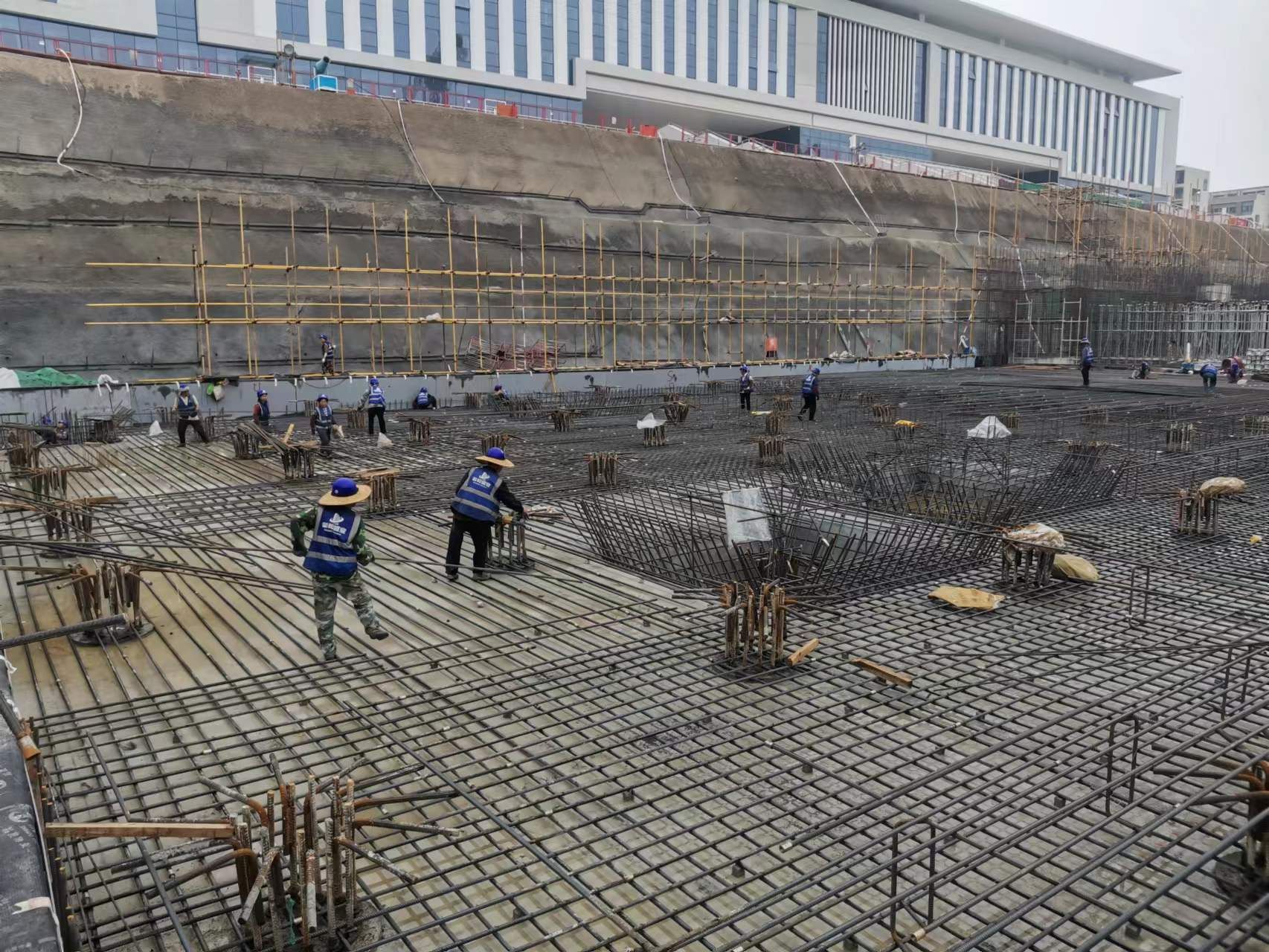 北段1区钢筋捆扎工程全面结束施工,2区筏板底筋绑扎完成90%、面筋及墙柱钢筋穿插捆绑作业同步推进,确保浇筑连续性。