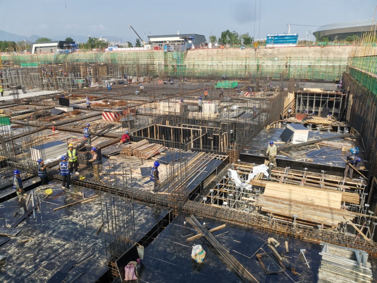 北段1区负三层墙柱、梁板混凝土浇筑作业全部完成并已通过工序验收,施工质量符合规范要求;2区负三层顶板框架梁支设与钢筋绑扎作业完成65%,正合理调配资源追赶进度,确保施工高效进行。