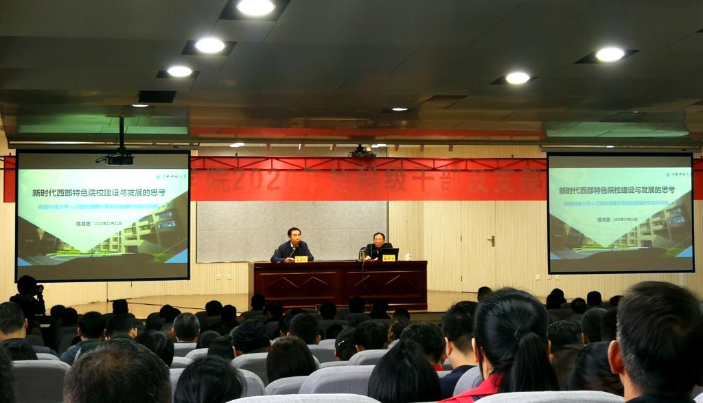 10月22日,陕西科技大学党委书记姚书志来到万象城,为全校处科级干部及党支部书记作报告,基建处在校党员干部到场学习聆听。校长朱元利主持报告会。
