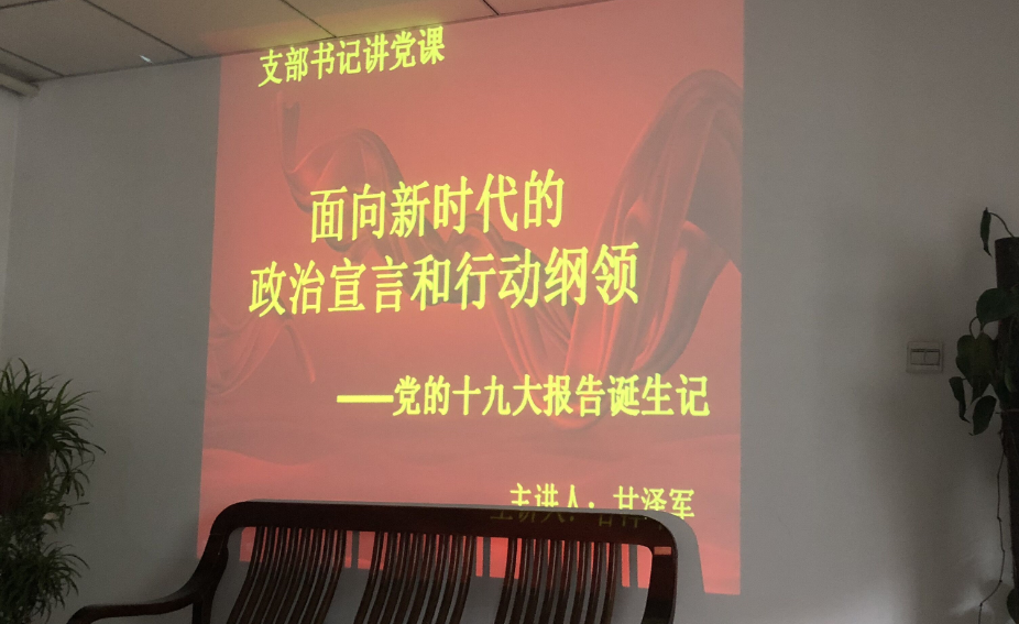 2017年12年29日下午在基建处2楼会议室,基建处处长甘泽军为基建处全体人员进行了《面向新时代的政治宣言和行动纲领之党的十九大报告诞生记》的党课讲座。