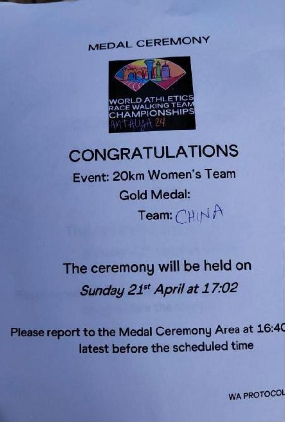 本网讯 北京时间2024年4月21日中午12点,世界竞走团体锦标赛在土耳其的安塔利亚开赛。万象城女子竞走运动员殷腊梅(左一)在20公里女子团体竞走比赛中获得冠军。