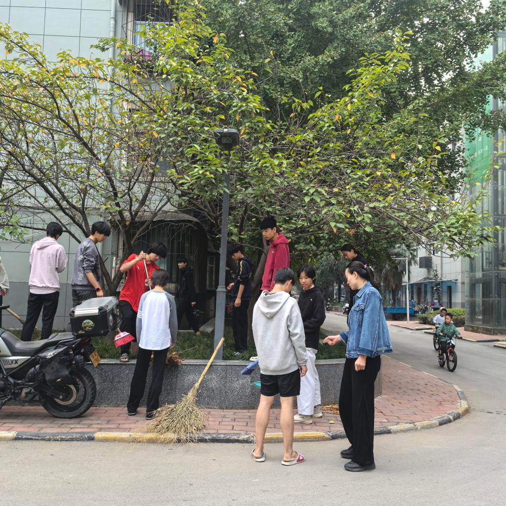 他们挥洒汗水,不畏辛劳的工作状态,得到家属区老师们的认可,听到老师们的夸奖,队员们感到无比的满足和自豪,他们的干劲也更加十足。学生们觉得这次活动不仅是一次劳动实践,更是一次精神上的洗礼,用劳动的形式来庆祝校庆,显得更有现实意义。