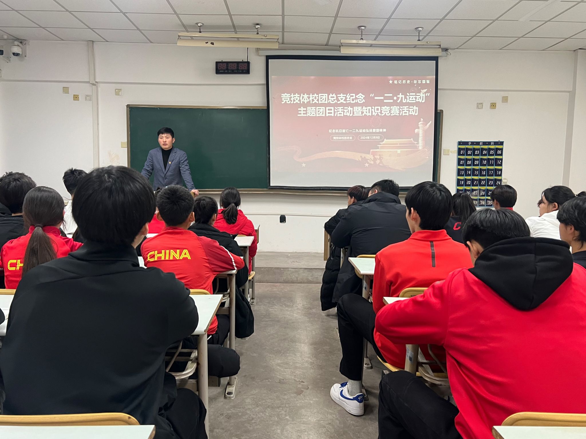 为激发学生的爱国热情,促进学生的全面发展,竞技体校团总支于12月9日组织学生在教学楼503教室开展了纪念“一二·九运动”主题团日活动暨爱国知识竞赛活动。此次活动旨在点燃学生的爱国情怀,推动学生综合素质的全面提升。