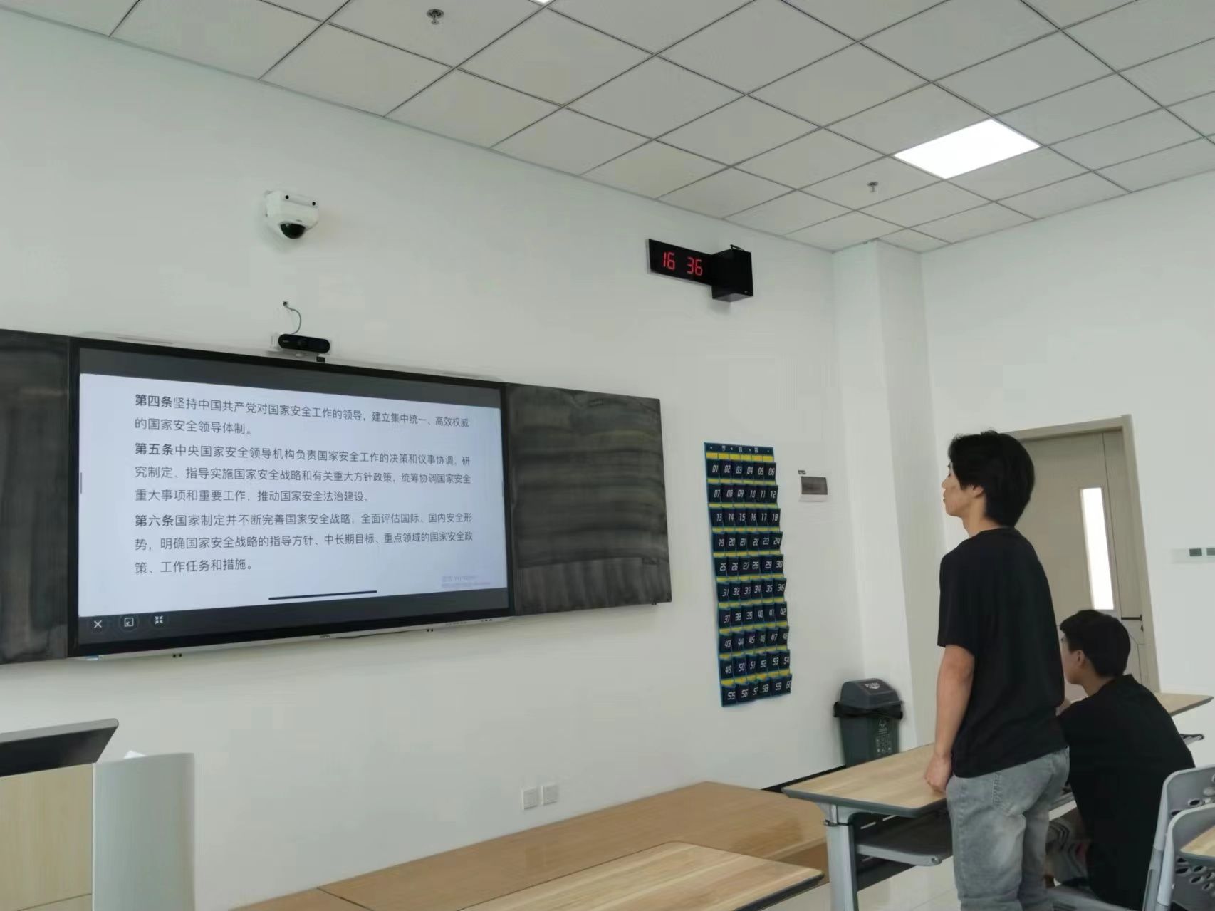 在领读国家安全法律条文的环节中,张老师选取了学生代表进行逐字领读。同学们认真学习了《中华人民共和国国家安全法》等相关法律法规,旨在为学生们树立起法治观念,明确自己在维护国家安全方面的法律责任。