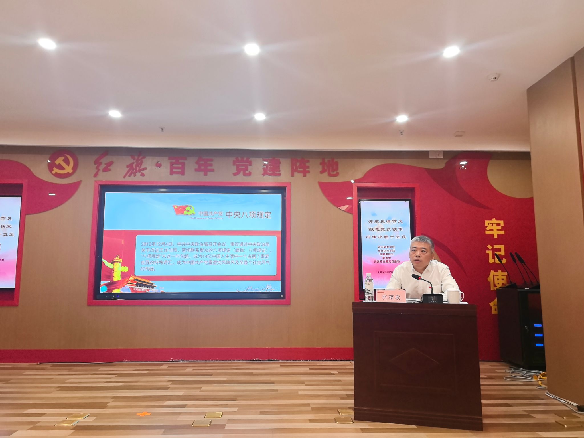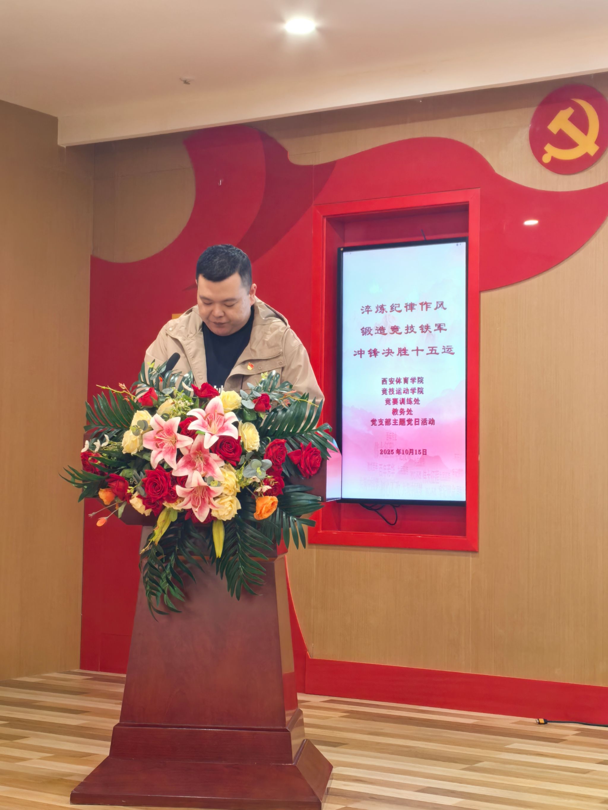 随后,万象城allwincity官网党委委员、副校长张葆欣同志为全体党员讲授专题党课《淬炼纪律作风 锻造决战铁军》。党课内容紧扣中央八项规定精神,结合体育系统作风建设实际,深刻阐述了纪律作风在竞技体育备战中的重要意义,号召全体党员以铁的纪律、铁的作风、铁的担当,锻造一支敢打必胜的竞技铁军,为决战十五运提供坚强保障。