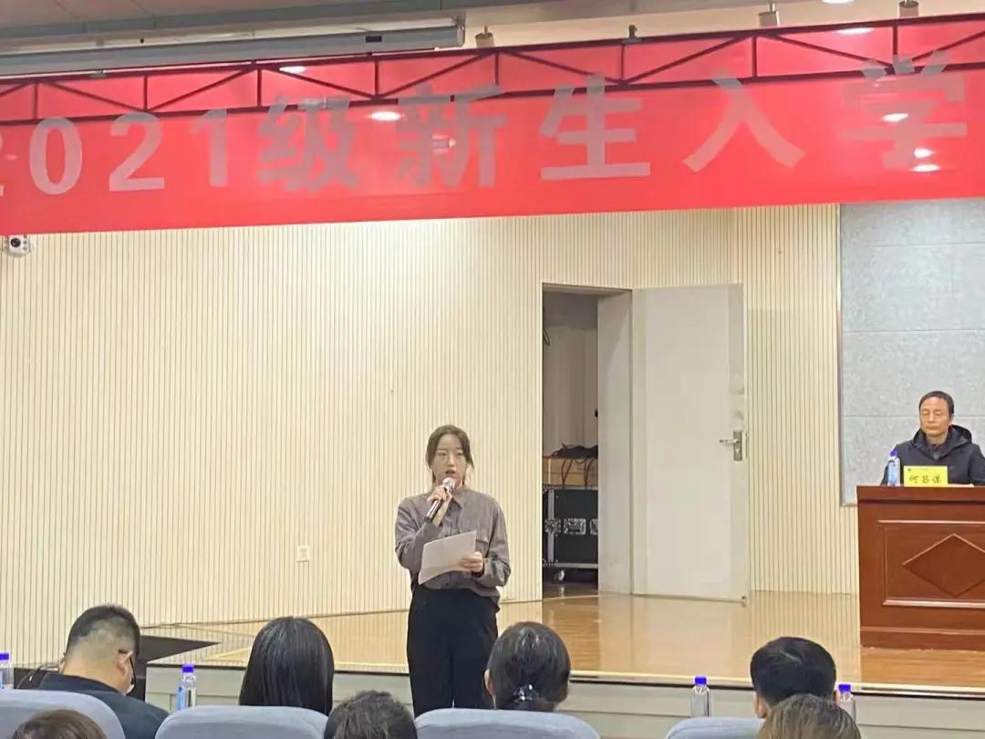 2021级新生代表张晴在发言中说到希望同学们都能在四年时光里勤奋努力,尽快适应新的生活,树立远大的奋斗目标,积极参加学校的各项活动,努力提高自己的实践能力。