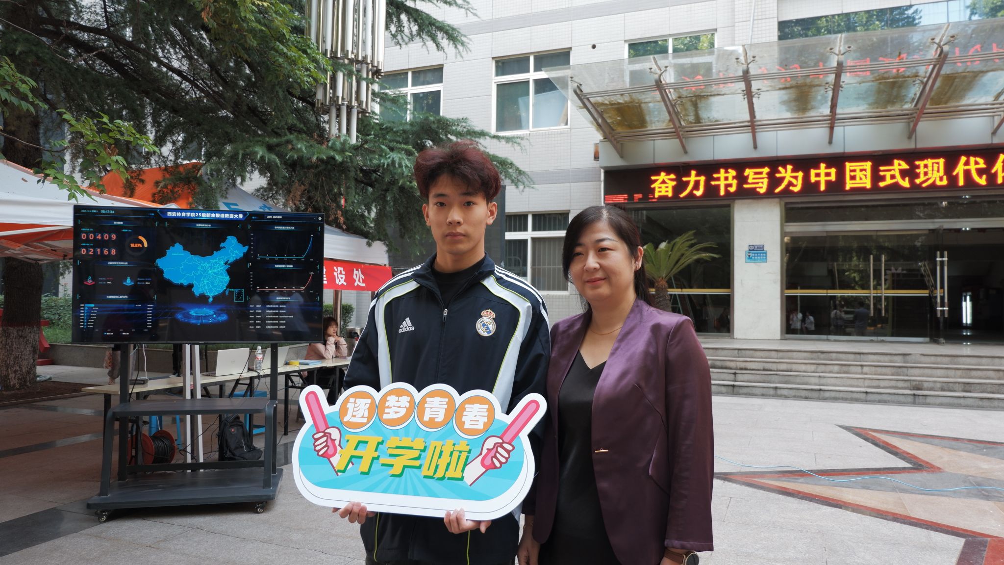 九月的风衔着书信穿过长廊,梧桐叶隙漏下碎金般的光。校门徐徐展开如一本等待落款的素笺,每一寸空气都浸染着崭新的墨香。在缓缓升起的朝阳中,运动与健康科学学院早已准备待发,期待着迎接新到来的一个个2025届新生朝气蓬勃的面孔。