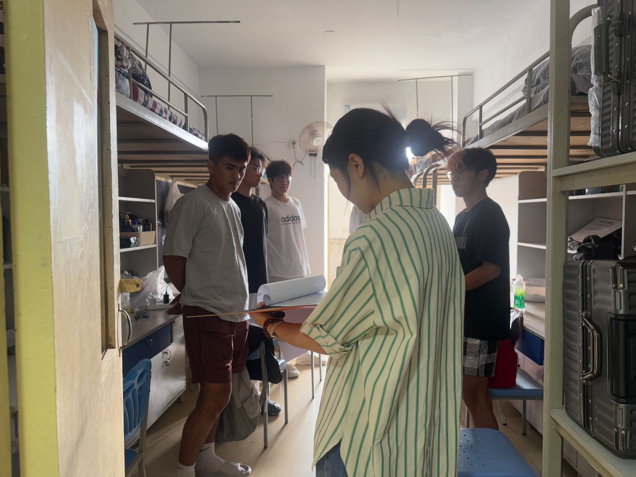 秋意渐浓,青春启航。9月6日下午,运动与健康科学学院2025级新生报到工作刚刚结束,新生辅导员陈楚乔老师便带领学生会成员深入新生宿舍,走访看望刚刚入校的同学们,为他们送去亲切问候与关怀。
