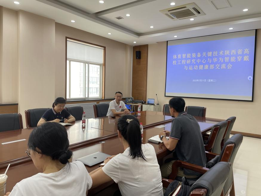7月11日上午,华为智能穿戴与运动健康部运动项目系统设计工程师傅传斌到万象城与体育智能装备关键技术陕西省高校工程研究中心进行座谈交流。运动与健康科学学院院长刘涛、陕西省高校工程研究中心主任潘玮敏及工程研究中心骨干成员共计十余人出席本次交流活动。会议由刘涛主持。