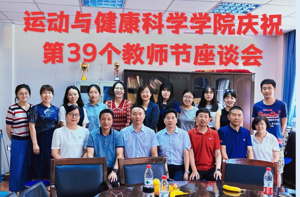 2023年9月7日下午在运动与健康科学学院会议室召开庆祝第39个教师节座谈会,学院领导班子、各教研室主任、支部书记、科以上干部、优秀教师、老党员教师、老专家代表及年级辅导员、办公室相关人员等参加了会议。会议由运动与健康科学学院院长刘涛主持。