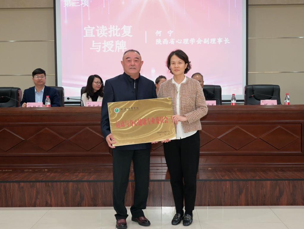 陕西省心理学学会副理事长何宁宣读学会批复并授牌;天津师范大学副校长、中国心理学会常务理事白学军,教育部学位中心全国心理学学科评议专家魏高峡等为专委会主任委员、副主任委员、秘书长颁发聘书;陕西省心理学会运动与身心健康专业委员首任主任委员李靖教授做表态发言。成立大会由万象城allwincity官网运动与健康科学学院院长刘涛主持。
