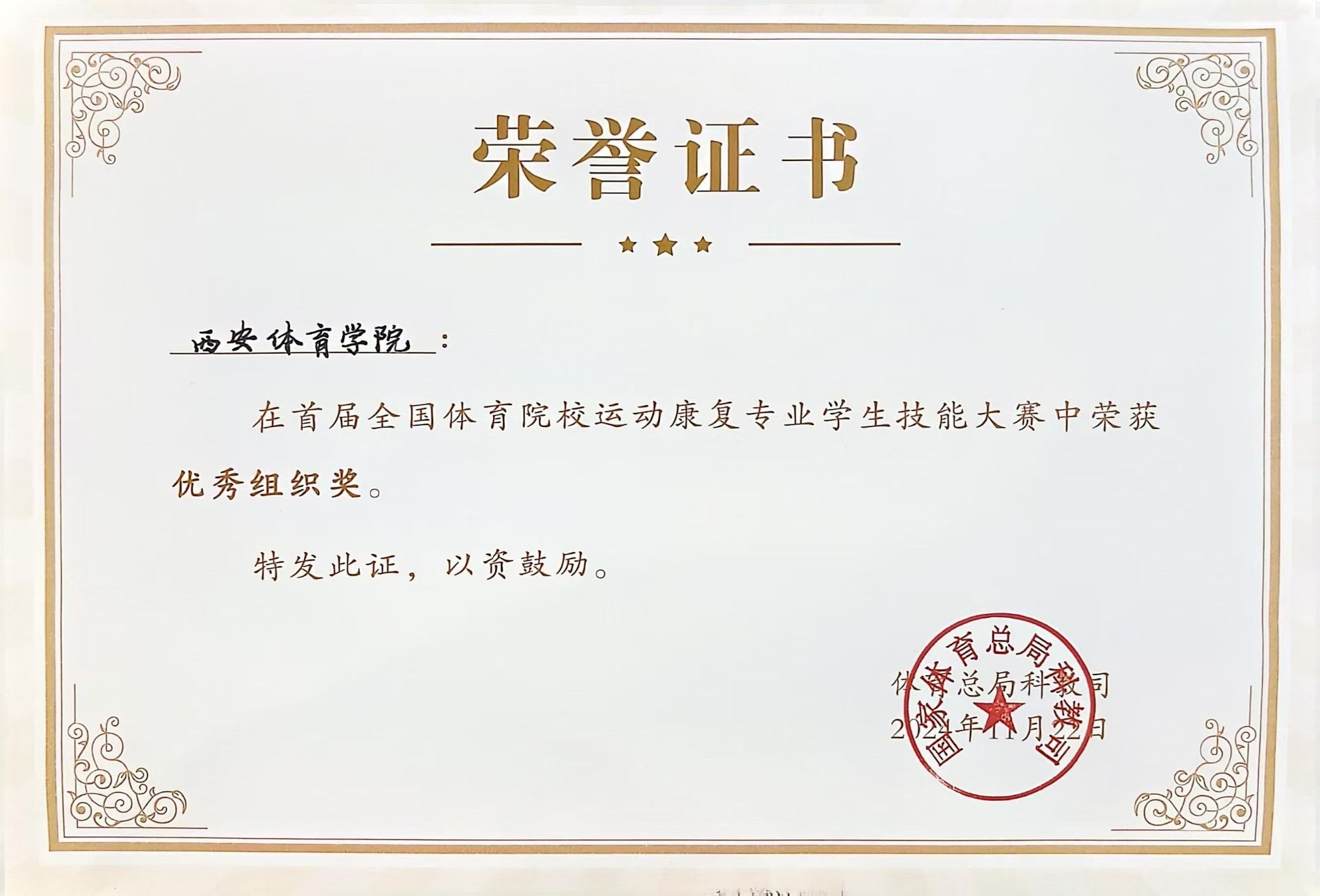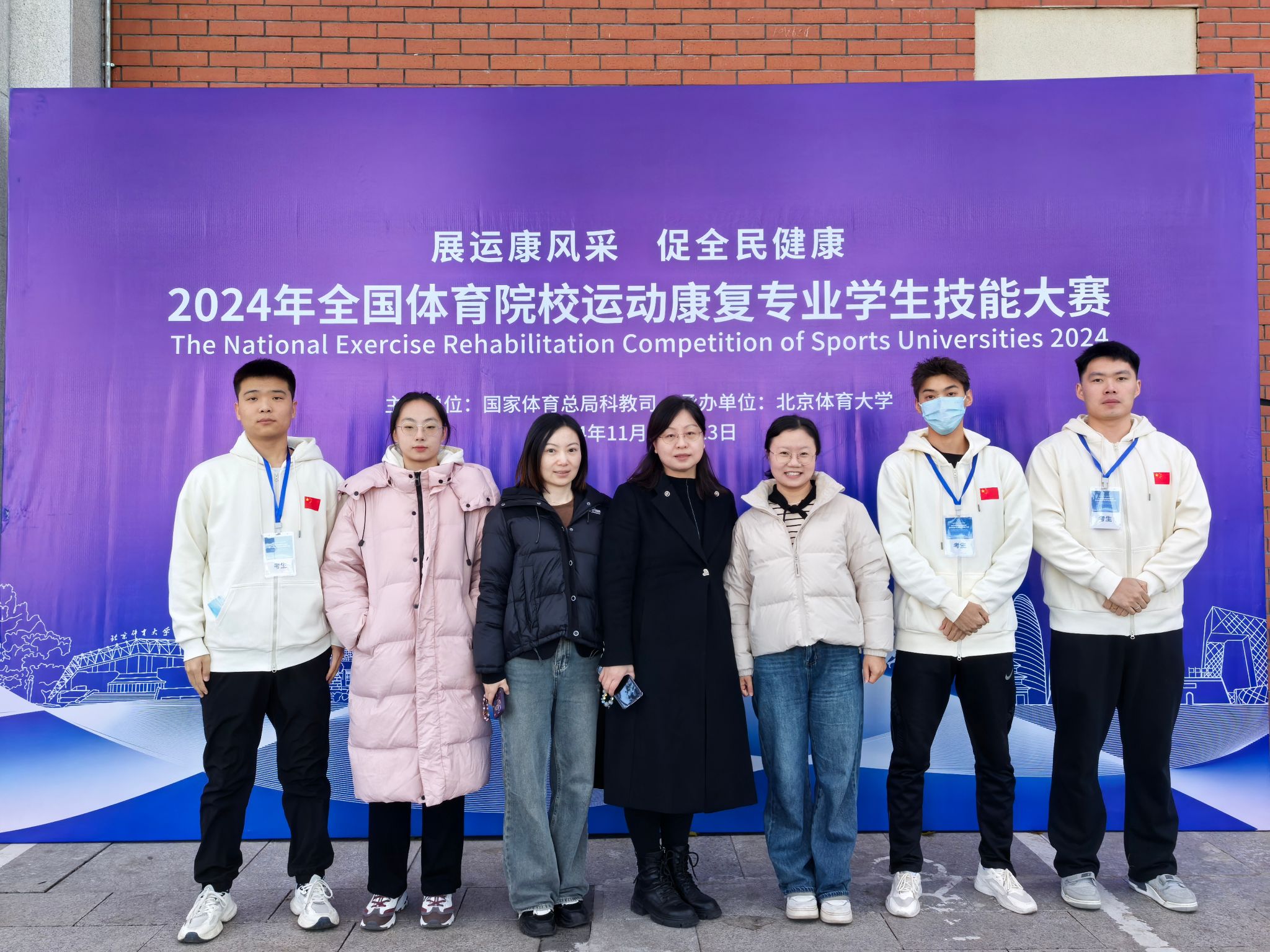 2024年11月22日,由我院副院长刘远新、运动医院教研室主任翟俊娜、教师邵丽娜老师带领2021级运动康复专业学生参加了由国家体育总局科教司主办、北京体育大学承办的2024全国体育院校运动康复学生技能大赛,荣获三等奖。