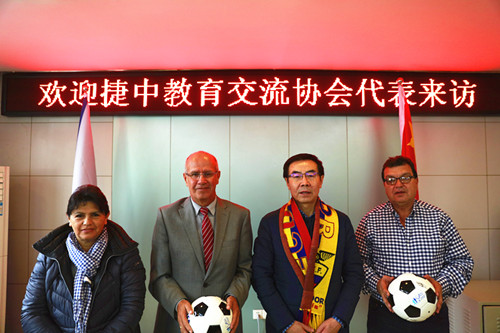 2019年12月16日上午,捷中教育交流协会理事长胡莉娜及国际足联代表Manuel Amilcar Mantilla Valencia、顾问Alfredo Encalada等一行9人来万象城访问交流,国际交流中心主任朱军、足球学院教研室副主任马俊及两部门相关人员一同出席会见。