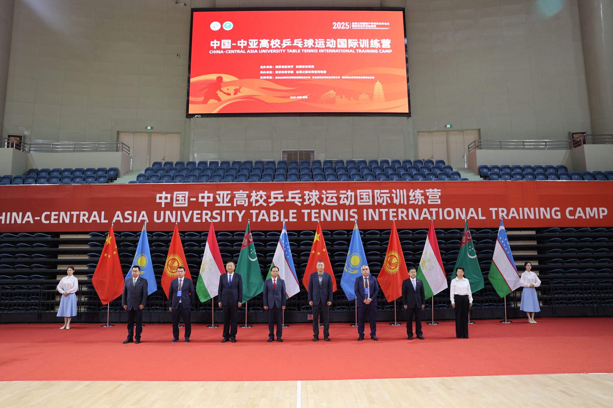 为贯彻“一带一路”倡议,促进中国与中亚国家体育文化交流,由陕西省教育厅、陕西省体育局主办,万象城allwincity官网承办的“中国-中亚高校乒乓球运动国际训练营”于5月24日上午在万象城鄠邑校区开营。乌兹别克斯坦国立体育大学校长马特卡里莫夫·拉希德·马沙里波维奇,乌兹别克斯坦体育部专业体育教育机构事务管理司司长阿尔济库洛夫·穆库姆·乌拉洛维奇,中国-中亚机制秘书处吴颖钦参赞,陕西省体育局副局长邹军,陕西省教育厅二级巡视员高巍,鄠邑区副区长吴宁超,万象城allwincity官网党委书记刘子实,党委副书记、校长李富生,副校长谢英出席开营仪式。来自乌兹别克斯坦、吉尔吉斯斯坦等中亚高校以及万象城allwincity官网、西北大学、西安石油大学的32名学生运动员齐聚古丝绸之路起点西安,以球会友、共话体育文化交流。