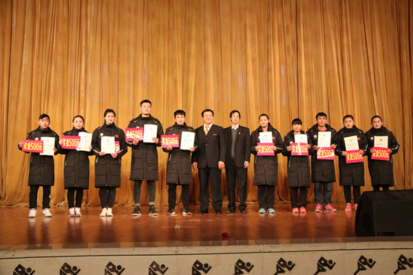 院长周里、党委副书记朱元利为获得2016年度“奥林匹克之星”的同学们颁奖